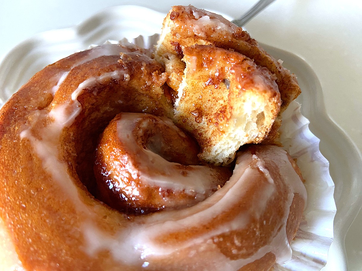 温めたことで生地はふわっふわ、溶けかかったグレーズは生地に染み込み甘さとシナモンがじゅわっと混ざって、とろける美味しさ。