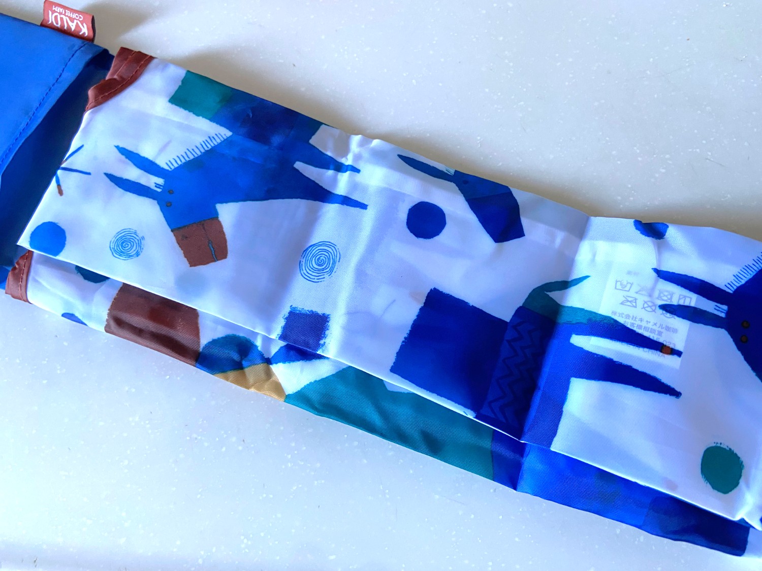 たたんでいる時は青一色ですが、開くとPOPなデザインが!