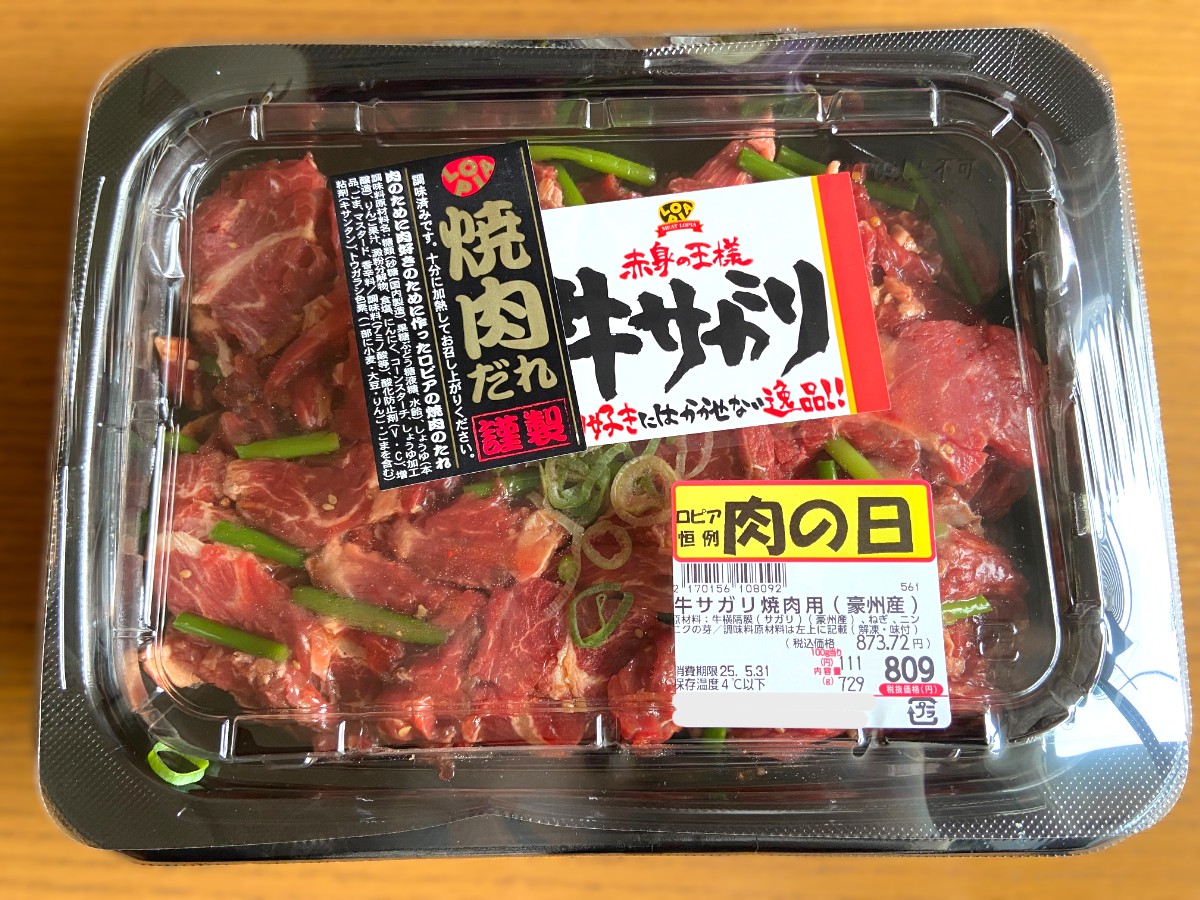 肉の日の爆安価格で、試食も提供されていた牛サガリ。