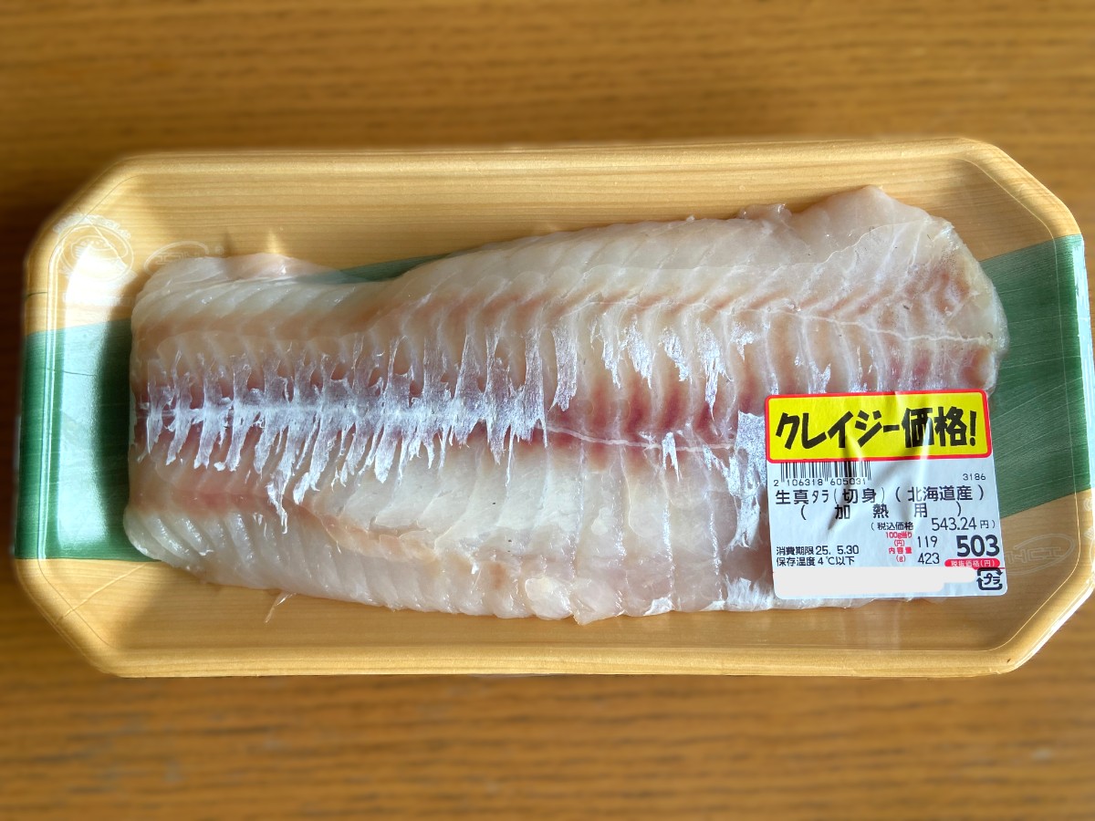 大きな大きな真タラの半身が入って、お買い得。唐揚げにして食べます!