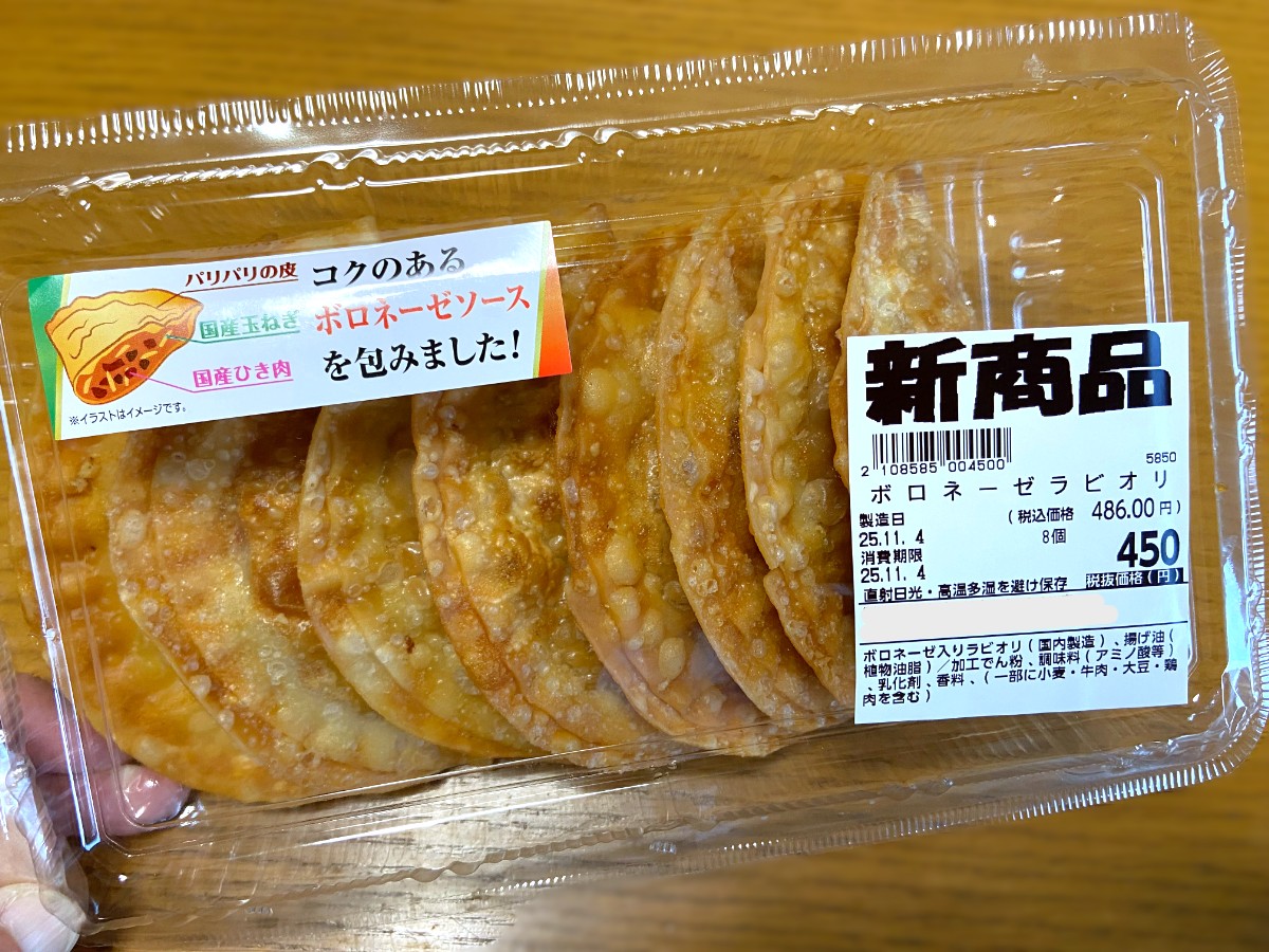 餃子の皮かな?パタンと半分におりたたまれていて、中にはボロネーゼ入り!