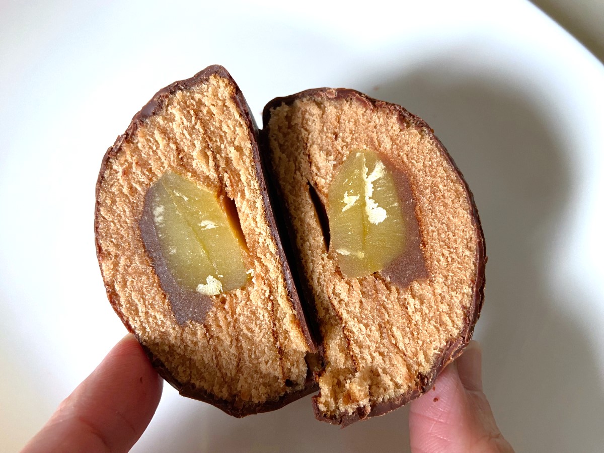 丸くてかわいい生地の中に、何と栗甘露煮がごろっと入っている、他にはない面白いスイーツです。
