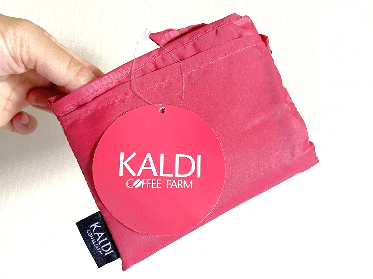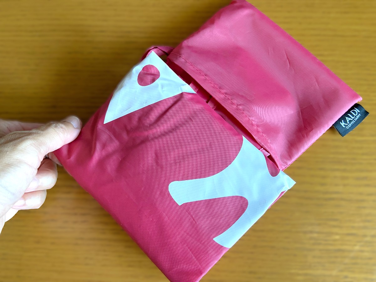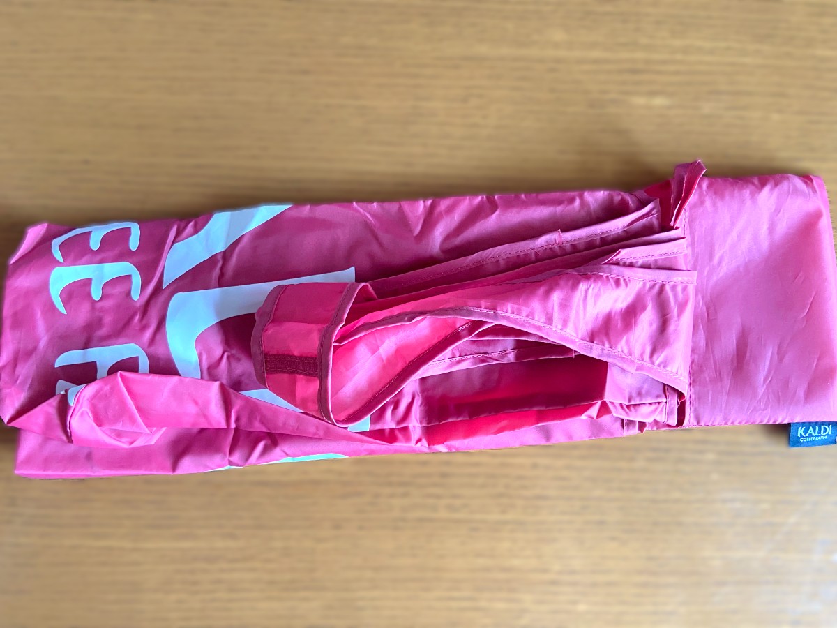 カルディで大人気のオリジナルエコバッグスモーキーピンクについて紹介しました。