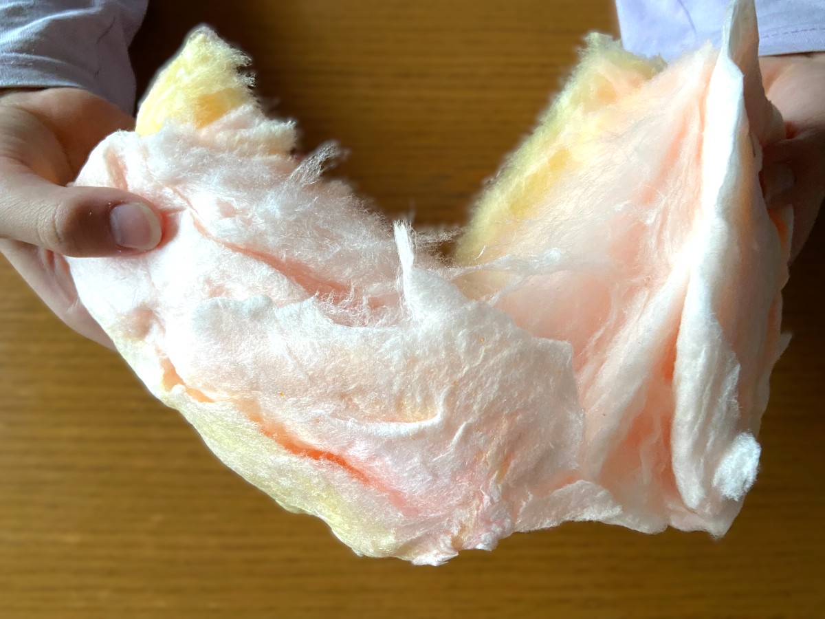 ちょっと力を入れるとすぐつぶれちゃいそうなほどふわふわなわたがし。